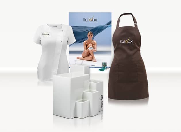 Italwax pensa anche alla promozione della vostra attività con materiali per il marketing di prima qualità e un’assistenza marketing completa. Poster, materiale pubblicitario, grembiuli e camici, oggetti per la cabina e il salone di altissima qualità, già pronti da utilizzare.
