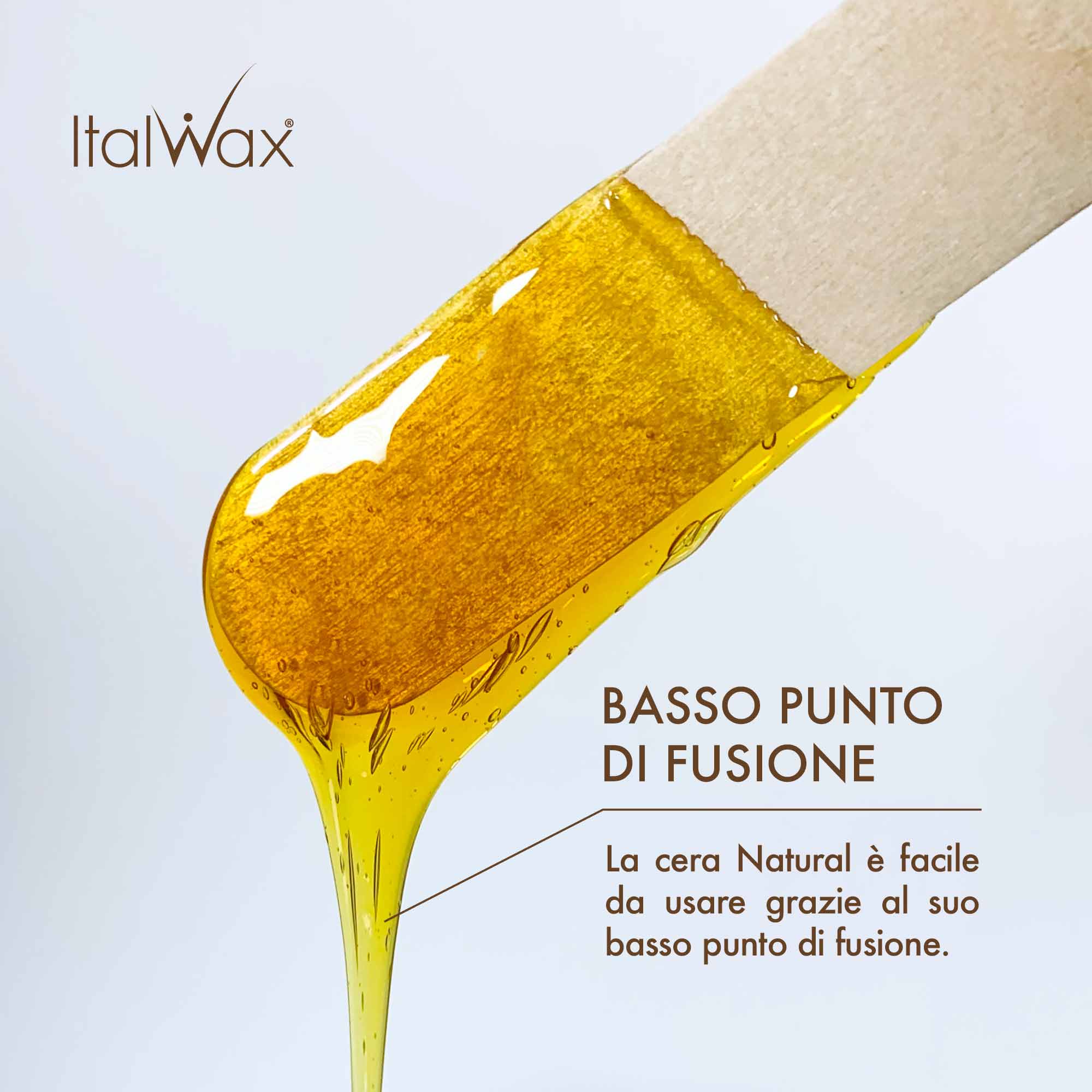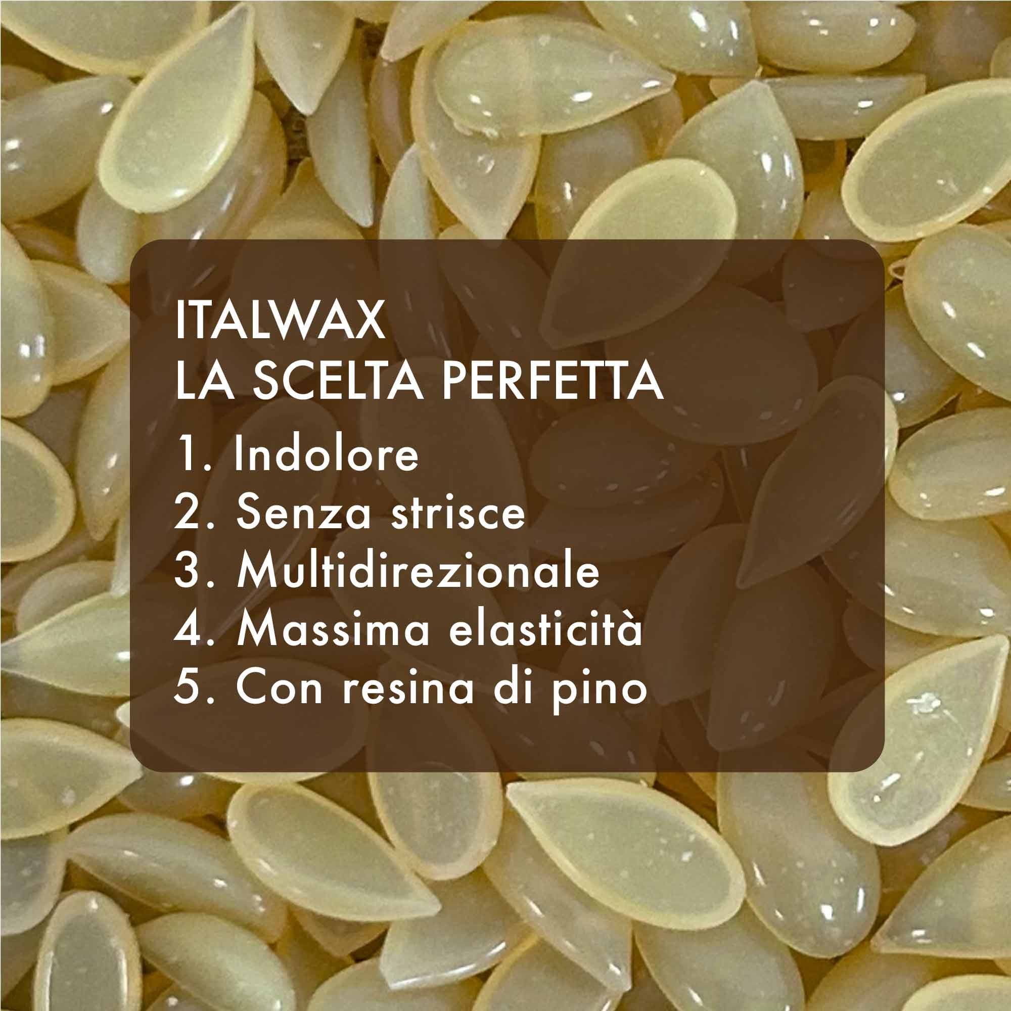 Italwax Film Wax Naturale è una cera film trasparente senza coloranti artificiali. Pur avendo una texture sottile, asciuga lentamente e questo permette la correzione di eventuali errori. La sua formula non fa fili durante l’applicazione e non si spezza durante lo strappo: queste caratteristiche la rendono interessante anche per chi sta muovendo i primi passi nella depilazione brasiliana. A base di pregiate resine naturali di pino, è efficace sui peli anche spessi e difficili delle zone sensibili, come zona bikini e ascelle. Permette una depilazione praticamente indolore, ed è l’ideale per chi cerca una cera brasiliana senza strisce facile da usare.